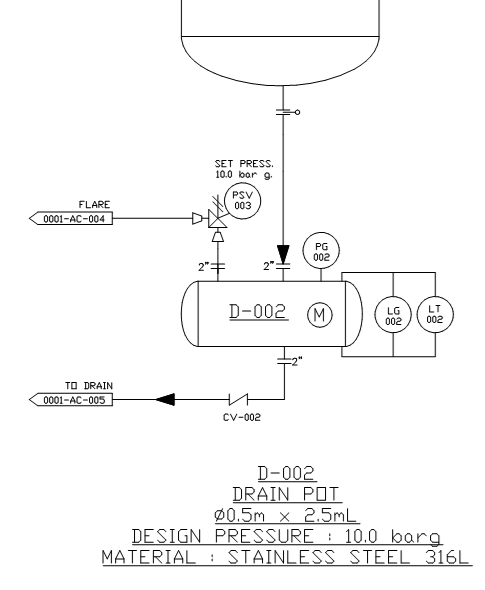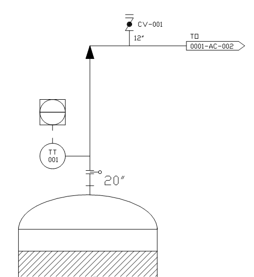 Inlet 을 도식화 하였으니 이번에는 System outlet 을 도식화 하겠습니다. Suction drum 상부에 위치해서 0001-AC-002 로 기수 분리된 Gas, Air 등의 Fluid 의 이동을 위한 도식화가 완료 되었습니다.