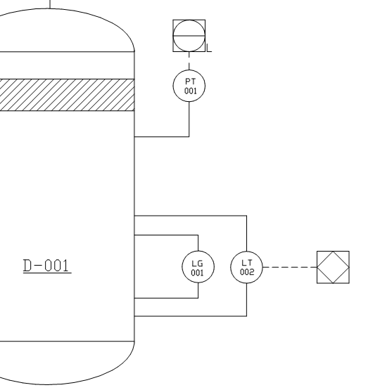 PT 001 : Vessel 내부의 압력을 측정하기 위해 설치하였습니다. 압력이 Normal (Setting 압력) 이하로 떨어지게 되면 Process 상에 문제가 있을 수도 있는 것이므로 L 을 추가하여 Vessel 내부의 압력을 Monitoring 하고 있습니다.