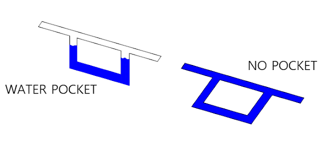 설명 ☞ 그림 12에 NO(NO POCKET)을 표기하였습니다. 위의 그림 처럼 배관 라인에 구배를 주어서 유체의 흐름(DRAIN)을 원할 하게 하는데 그 목적이 있습니다.