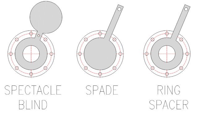 좌측 위에서부터 호칭은 Spade Ring Spacer 사용 목적은 기본적으로 Spectacle Blind와 동일합니다. |