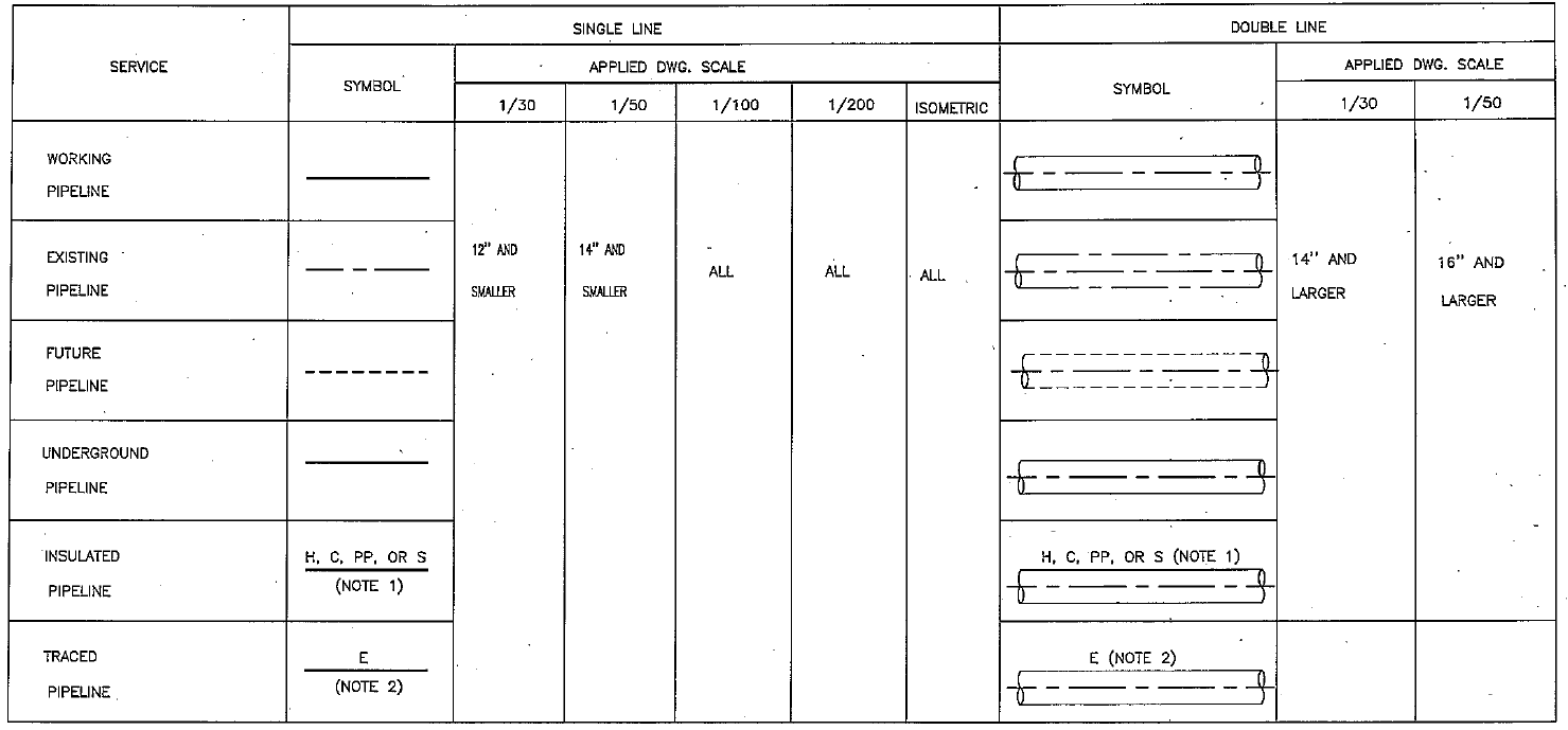 설명 ☞ 그림 1은 P&ID상에서 파이프 관련 Symbol & Legend입니다. 좌측부터 순서대로 Major Process Line , Frag 입니다.
