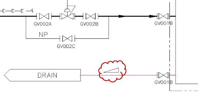 ▶ DRAIN DIRECTION이 P&ID에서 어떻게 설치 되는지 살펴보겠습니다.