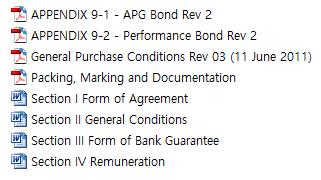 위의 그림은 예시를 위해 글쓴이가 임으로 임의의 사양서의 파일을 하나의 폴더에 배치한 후 나열한 상태입니다. 총 43개의 파일입니다. 사양서를 보기 위해서는 사양서 전체의 구분을 이해하고 있는 것을 필요로 합니다.