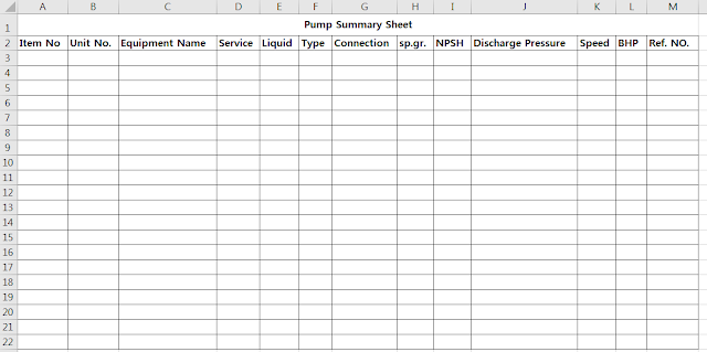 플랜트 관련 직종에 근무하면서 특히 기계를 담당한다면 Summary list sheet 를 작성하게 됩니다. 위의 표에서 볼 수 있듯이 기본적으로 아이템을 식별할 수 있는 번호를 시작으로 이름과 Service, 다루는 유체등의 정보 순으로 Data 를 기재하게끔 되어있습니다.
