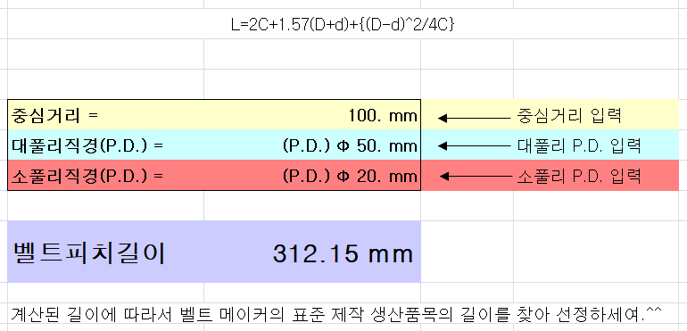 L=2C+1.57(D+d)+{(D-d)^2/4C}