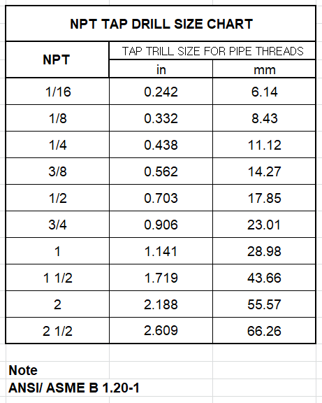 첨부 자료는 NPT Tap size for pipe threads 입니다.