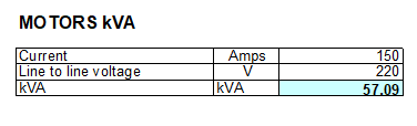 첨부 자료는 Motor 의 kVA 값을 계산하는 엑셀시트 입니다.